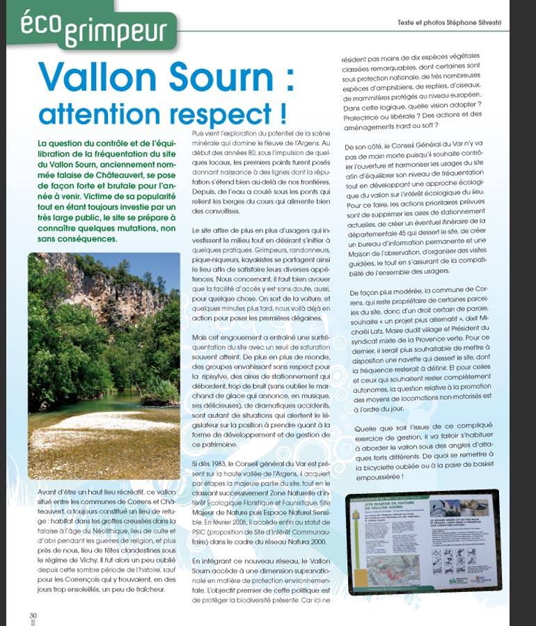 Article, pour la presse allemande, sur les falaises calcaires et ensoleillées du Vallon-Sourn / Chateauvert