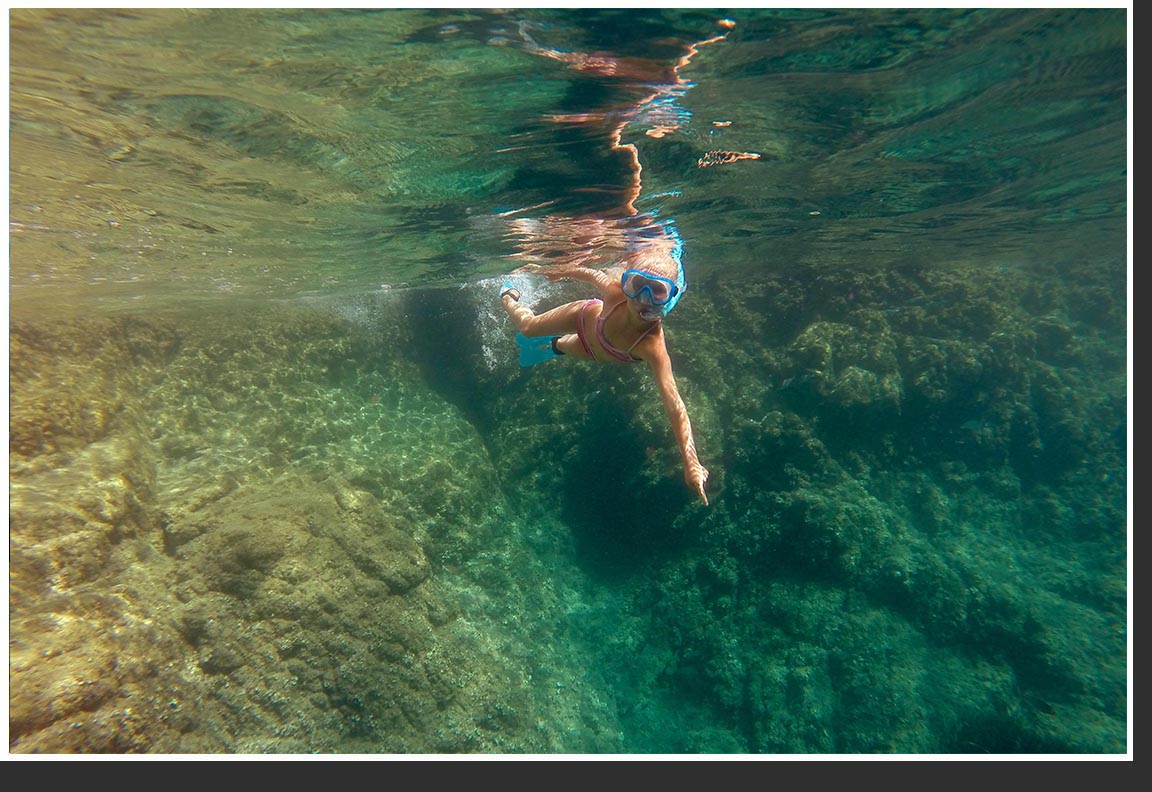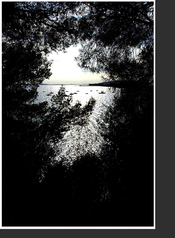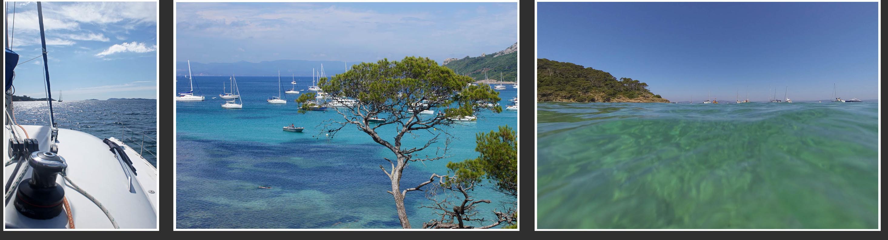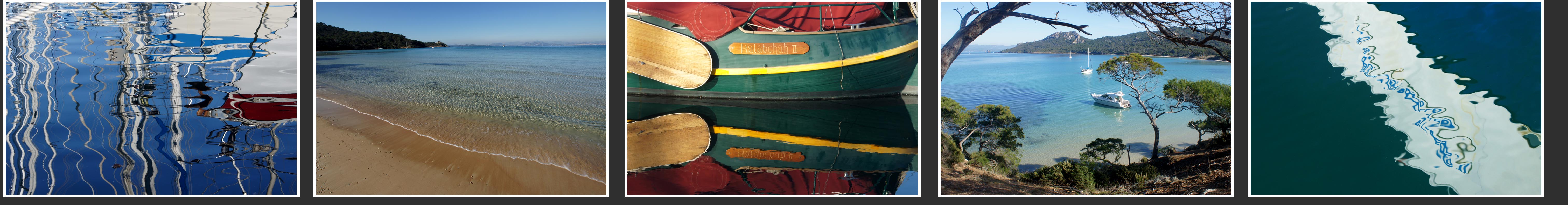 Quelques milles nautiques plus loin, accostage à Porquerolles. Jeux d'eau et de reflets.