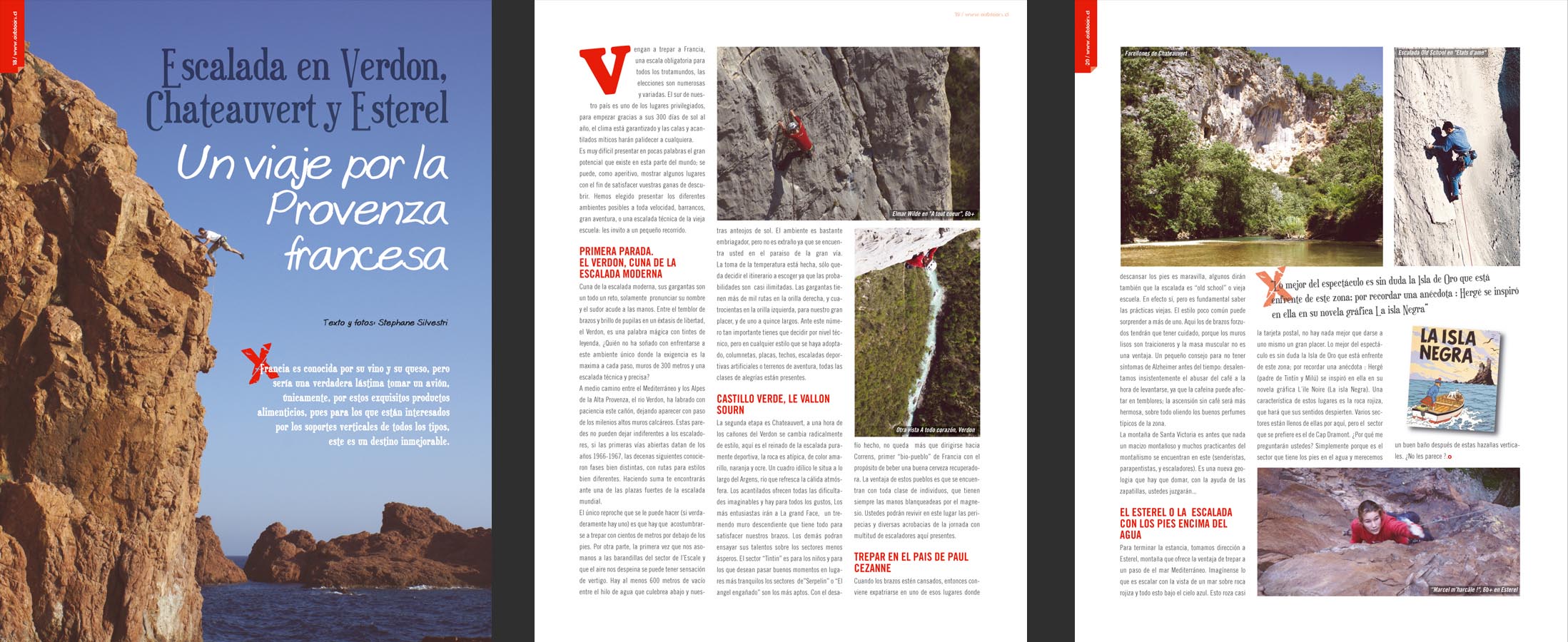 C'est la rentrée des classes! On rend les premieres copies. Petit detour dans le magazine chilien Outdoors qui met un coup de projecteur sur les falaises provençales.