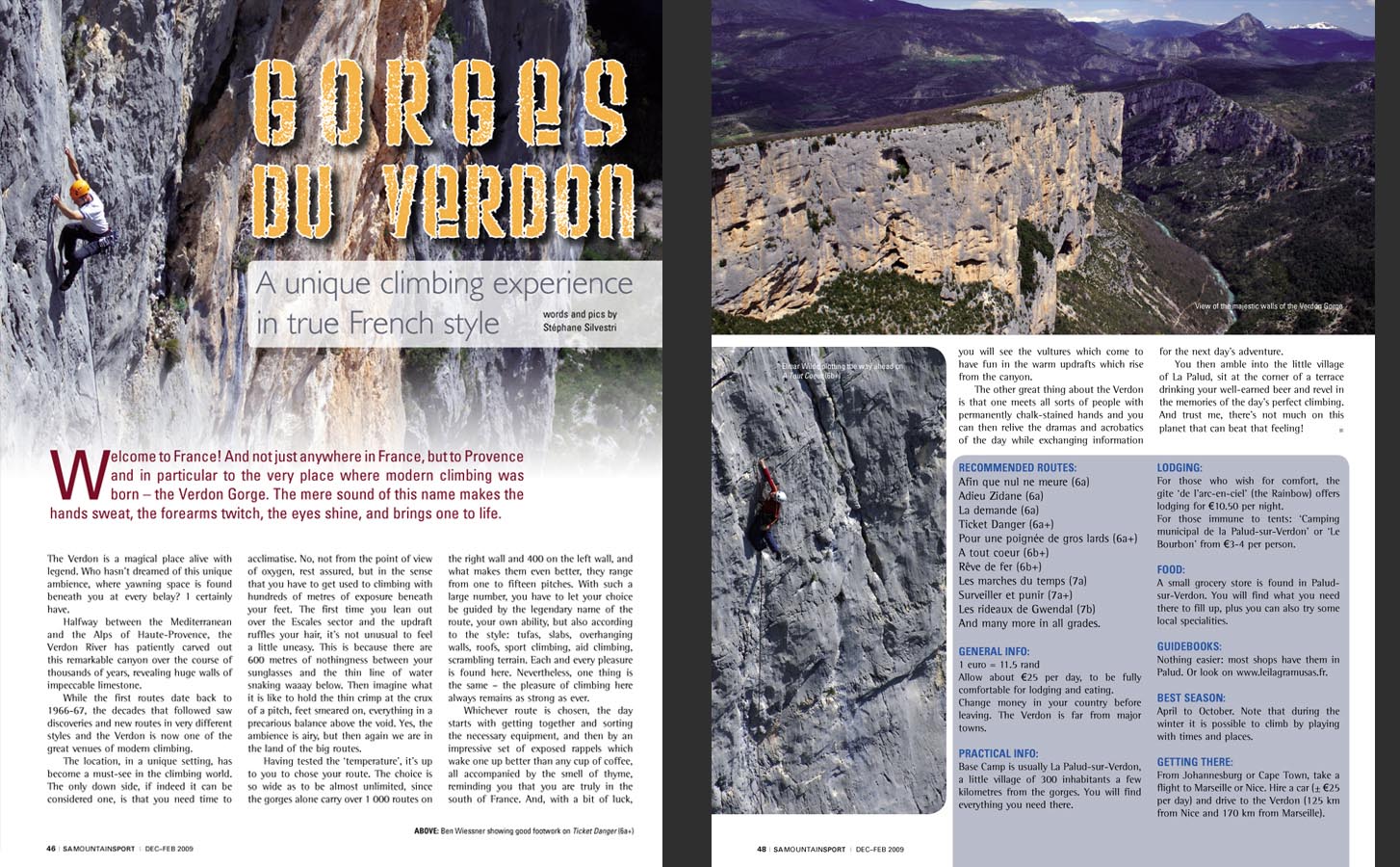 C'est tout chaud et ça arrive d'Afrique du Sud. Le magazine SA Mountain Sport s'interesse ce mois-ci à l'une des plus celebre falaise mondiale : le Verdon !
